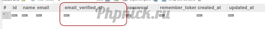 Если вы теперь посмотрите структуру таблицы users, то вы увидите, что в ней есть новое поле email_verified_at