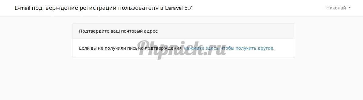 Затем вы увидите, что вы автоматически будете перенаправлены на страницу подтверждения регистрации (адрес_сайта/email/verify)
